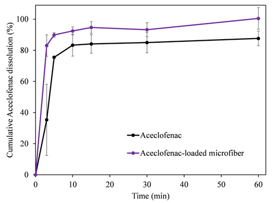 Dissolution profiles of pure aceclofenac and aceclofenac-loaded microfibers.