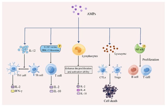 Outline of research on the regulatory effect of AMPs on lymphocytes in recent years.