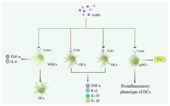 6.2. Regulation of DCs by Microbial-Derived AMPs