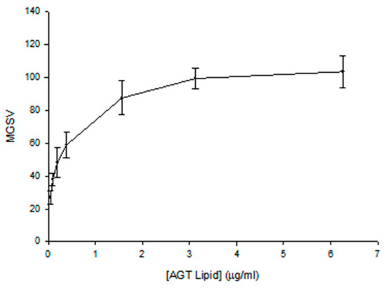 The echogenicity quantitation for the 4 °C 0-point samples is shown in Figure 1. MGSV vs. AGT lipid concentration corresponds to a hyperbolic relationship. For the echogenicity index of the product, we chose the maximum MGSV with specification of the concentration.