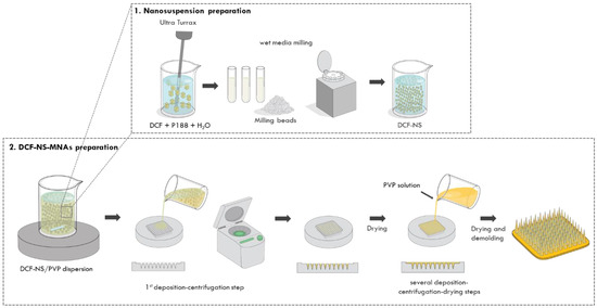 Schematic representation of the preparation of DCF-NS and DCF-NS-MNAs.