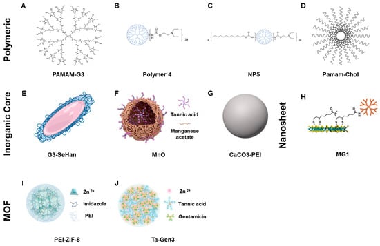 Visualization of scavengers. (A–D) Polymeric NABNs. (E–G) NABNs that contain inorganic cores. (H) 2D Nanosheet NABN. (I,J) Metal-oxide framework NABNs.