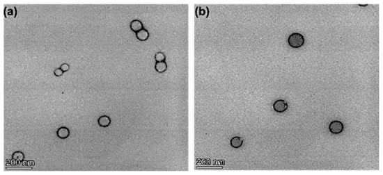 Typical TEM images of optimized formulation 1 (a) and optimized formulation 2 (b) showing the structure of the nanoparticles.