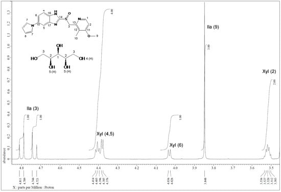 Furthermore, the formation of Ila/Xyl cocrystal in a 1:1 ratio was predicted through solution-state 1H-NMR spectra (Figure 7). This result was further refined and confirmed through 1H-NMR analysis (Figure S16) and 2D 1H-1H COSY analysis (Figure S18).