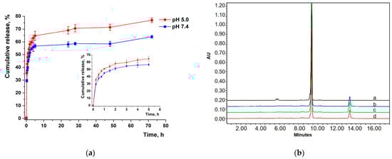 DL and EE were analyzed by HPLC as described above. To determine DL of XL, 5 mg of NPs were accurately weighed and suspended in 20 µL of DMSO and HPLC mobile phase to a final concentration of 1 mg/mL. Ten µL of the resulting solution were injected into the HPLC system. To determine EE of XL, 5 mg of NPs were accurately weighed and resuspended in distilled water (4 mL) and centrifuged for 30 min at +4 °C and 15,000 g. The supernatant was removed, and the procedure was repeated. Then, the precipitate was transferred into a 5 mL volumetric flask with mobile phase added to 5 mL. Ten µL of the resulting solution were injected into the HPLC system.
