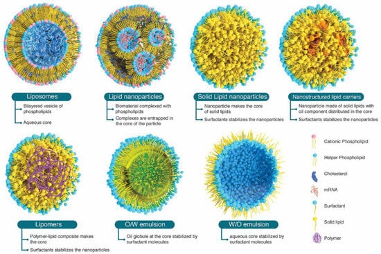 The existing USFDA-approved LNP formulations consist of lipids which comprise (i) an ionizable cationic lipid; (ii) helper lipids, such as 1,2-distearoyl-sn-glycero-3-phosphocholine (DSPC); (iii) cholesterol, which also serves as a helper lipid; and (iv) a polyethylene glycol (PEG)–lipid conjugate [151].