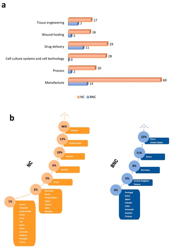 - Bacakova, L.; Pajorova, J.; Bacakova, M.; Skogberg, A.; Kallio, P.; Kolarova, K.; Svorcik, V. Versatile Application of Nanocellulose: From Industry to Skin Tissue Engineering and Wound Healing. Nanomaterials 2019, 9, 164. [Google Scholar] [CrossRef] [PubMed]