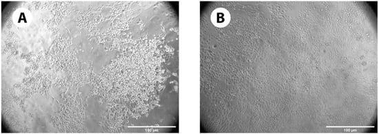 (A) Growth of immortalized HCEC cells on 20% w/v GelMA+ gels, (B) Growth of immortalized HCEC cells on 30% w/v GelMA+ gels. On the 5th day, the cell growth on the respective hydrogels was observed.