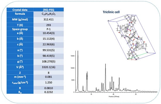PXRD, crystallographic data, and crystal structure of (RS)-PZQ. Adapted from Reference [58].