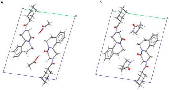 Crystal structures of (a) polymorph B and (b) polymorph C of PZQ.