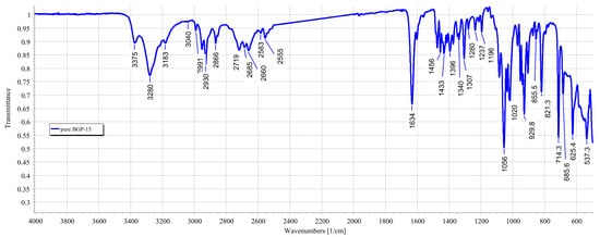FTIR spectrum of BGP-15. A broad region in the 3200–3400 range was observed, characteristic of the OH group. The characteristic peaks of the amine group were 3375, 3279 and 1634 cm−1, respectively. Characteristic peaks of the ether group were found at 2991 and 2929 cm−1.