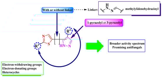 2-Pyrazoline is an important scaffold in anti-infective drugs, possessing antibacterial, antifungal, antiviral, antiparasitic, and antituberculosis potential [14]. Herein, we present the structure–activity relationship for some series of thiazole linked with 2-pyrazoline derivatives with promising antimicrobial potential to establish how clubbing these two heterocycles influences the biological activity of the entire molecule.