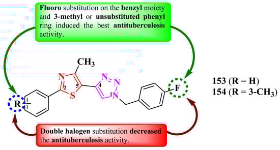 - Shinde, V.; Mahulikar, P.; Mhaske, P.C.; Chakraborty, S.; Choudhari, A.; Phalle, S.; Choudhari, P.; Sarkar, D. Synthesis and antimycobacterial evaluation of new 5-(1-benzyl-1H-1,2,3-triazol-4-yl)-4-methyl-2-arylthiazole derivatives. Med. Chem. Res. 2019, 28, 805–819. [Google Scholar] [CrossRef]
