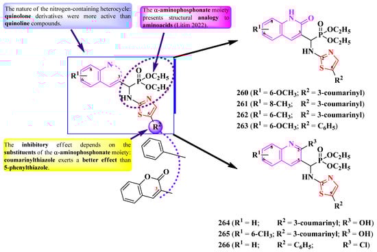 - Litim, B.; Djahoudi, A.; Meliani, S.; Boukhari, A. Synthesis and potential antimicrobial activity of novel α-aminophosphonates derivatives bearing substituted quinoline or quinolone and thiazole moieties. Med. Chem. Res. 2022, 31, 60–74. [Google Scholar] [CrossRef]