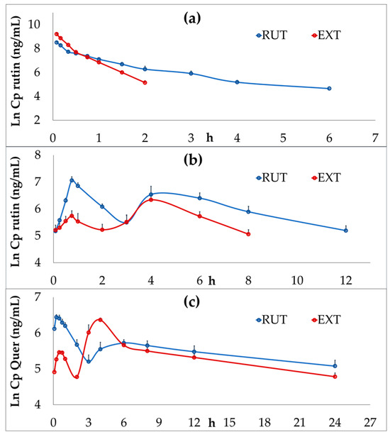| Pure Rutin (0.37 mg/kg) | Extract (Equivalent to 1.48 mg/kg of Rutin) | Pure Rutin (100 mg/kg) | Extract (Equivalent to 7.4 mg/kg of Rutin) | |