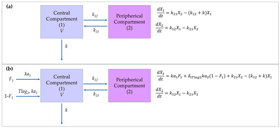- Sherwin, C.M.; Kiang, T.K.L.; Spigarelli, M.G.; Ensom, M.H.H. Fundamentals of Population Pharmacokinetic Modelling. Clin. Pharmacokinet. 2012, 51, 573–590. [Google Scholar] [CrossRef]