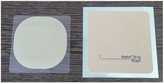 It is important to reinforce that the test formulation has a lower drug content in a smaller patch size compared to the reference product Restiva® for the same strength (in this study, 20 µg/h), being in line with FDA guidance on residual drug content for transdermal products []. Therefore, the test formulation is pharmaceutically more efficient than Restiva®, considering the products promote the same dose release (20 µg/h).