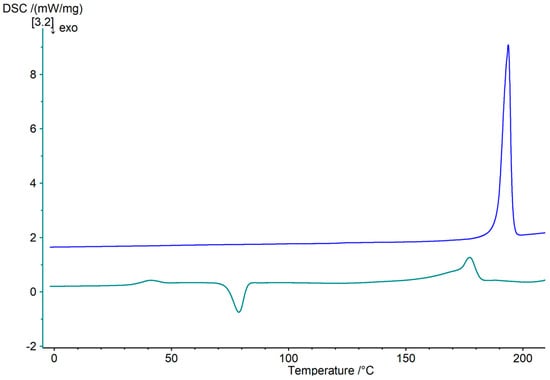 To verify the physical state of the crystalline and amorphous regions, samples of these areas were examined using dynamic and isothermal differential calorimetry (DSC 214 Polyma; NETZSCH-Gerätebau GmbH, Selb, Germany). For this purpose, 5–15 mg of the thin-film material was taken at the corresponding point, directly transferred into 60 µL aluminum crucibles (Concavus pan; NETZSCH-Gerätebau GmbH, Selb, Germany), which were subsequently cold-welded and analyzed. The samples then were heated to 120 °C at a heating rate of 10 °C*min−1 and held for 60 min.