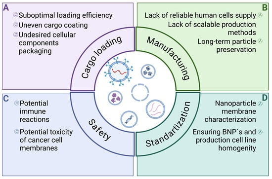 While the potential of BMNPs is considerable, a few technological challenges must be overcome before their full clinical applications can be implemented. First, it important to guarantee the integrity and functionality of the biomimetic coatings to optimize the efficiency of cargo loading and to standardize production processes in the development of BMNPs. Moreover, improvements must be made to the scalability and cost-effectiveness of BMNP production to facilitate their widespread use.