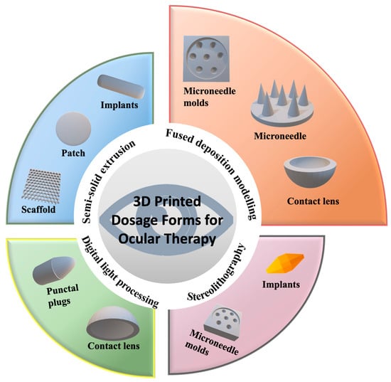 - Tagami, T.; Goto, E.; Kida, R.; Hirose, K.; Noda, T.; Ozeki, T. Lyophilized Ophthalmologic Patches as Novel Corneal Drug Formulations Using a Semi-Solid Extrusion 3D Printer. Int. J. Pharm. 2022, 617, 121448. [Google Scholar] [CrossRef] [PubMed]
