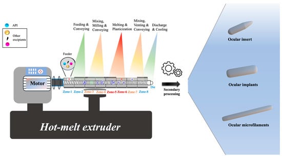 - Shadambikar, G.; Marathe, S.; Patil, A.; Joshi, R.; Bandari, S.; Majumdar, S.; Repka, M. Novel Application of Hot Melt Extrusion Technology for Preparation and Evaluation of Valacyclovir Hydrochloride Ocular Inserts. AAPS PharmSciTech 2021, 22, 1–7. [Google Scholar] [CrossRef]