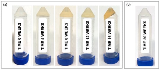 Figure 1c). Furthermore, all samples showed a visible color change, transitioning from clear (month 0) to a light yellow color at month 1, and progressing to a dark orange by month 4 (