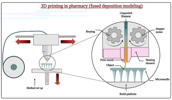 Microneedles are pivotal in diverse biomedical applications, including drug delivery and biosensing. Advanced 3D printing methodologies facilitate their precise fabrication and customization [34]. Stereolithography (SLA) and digital light processing (DLP) employ light to cure photosensitive resins in a layered fashion, yielding microneedles characterized by sharp tips and intricate features. Fused deposition modeling (FDM) utilizes the extrusion of thermoplastic filaments, although its capability to achieve extremely minute features may be limited, as presented in Figure 5 [108].