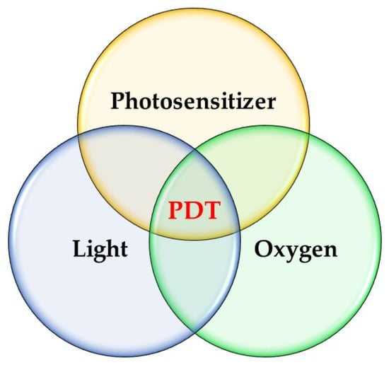PDT comprises three essential components: a photosensitizer, light, and oxygen (Figure 1). Photosensitizers act as catalysts, converting molecular oxygen into reactive oxygen species such as singlet oxygen, hydroxyl radicals, and superoxide anions upon light absorption. PDT has garnered significant interest due to its unique mechanism of action, which selectively targets cancer cells while sparing healthy tissue. This selectivity is primarily due to the photosensitizing agents used in PDT, which accumulate preferentially in tumor cells. When activated by light, these agents produce reactive oxygen species, especially singlet oxygen, causing localized cell death []. This makes PDT a minimally invasive treatment option with fewer systemic side effects compared to traditional methods like chemotherapy or radiation. Figure 2 represents how PDT applies to cancer patients [].