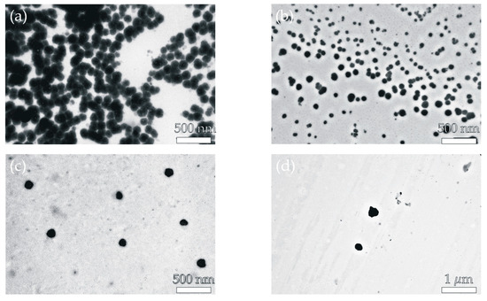 Transmission electron microscopy (TEM) was used to assess the shape morphology and size of the developed nanosystems. The developed products that had been synthesized were collected on TEM grids. TEM studies were carried out using equipment installed in the Laborarory of Electron Microscopy, Nencki Institute of Experimental Biology, Polish Academy of Sciences, Warsaw, Poland. Electron micrographs were taken using a CCD MORADA G2 (EMSIS GmBH, Münster, Germany) camera on a JEM 1400 (JEOL Co., Tokyo, Japan) transmission electron microscope sponsored by the EU Structural Funds: Centre of Advanced Technology BIM—Equipment purchase for the Laboratory of Biological and Medical Imaging.