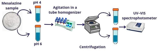MSZ solubility was determined at pH levels of 4 and 6. To prepare the samples, an excess amount of MSZ was added to ensure medium saturation. The samples were then agitated at room temperature using a tube homogenizer for 24 h and subsequently centrifuged at 3000 rpm for 15 min. The supernatant was filtered (Millipore Amicon UFC201024, 10 KDa, Burlington, MA, USA), and the samples were analyzed using a UV–VIS spectrophotometer Cary 60 (Agilent Technologies, CA, USA).