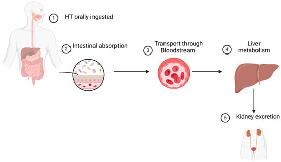 Bioavailability of HT inside the human body. Created with BioRender.com. https://app.biorender.com (accessed on 2 October 2024).