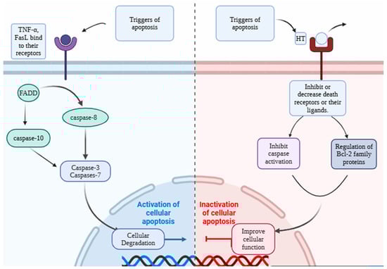 Antiapoptotic effect of HT on the extrinsic apoptotic pathway. Created with BioRender.com. https://app.biorender.com (accessed on 30 August 2024).