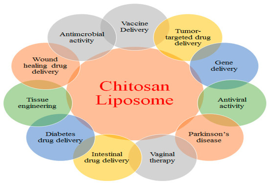 Multifaceted biomedical applications of CS-liposome-based systems. Reproduced with permission from [67], which was published under a CC BY license.