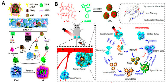 - Li, J.; Zhao, M.; Sun, M.; Wu, S.; Zhang, H.; Dai, Y.; Wang, D. Multifunctional Nanoparticles Boost Cancer Immunotherapy Based on Modulating the Immunosuppressive Tumor Microenvironment. ACS Appl. Mater. Interfaces 2020, 12, 50734–50747. [Google Scholar] [CrossRef]