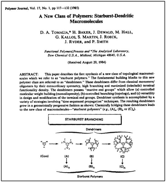 - Tomalia, D.A.; Dewald, J.R.; Hall, M.J.; Martin, S.J.; Smith, P.B. In Proceedings of the Preprints of the 1st SPSJ International Polymer Conference, Society of Polymer Science, Kyoto, Japan, 20–24 August 1984; p. 65.