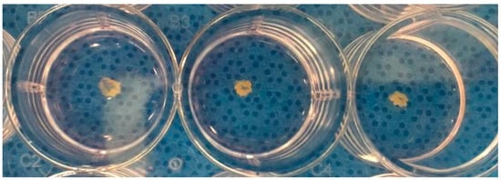 In the laboratory, dental pulp samples were rinsed twice in saline and digested with 1 mg/mL TrypLE (Gibco Invitrogen, Grand Island, NY, USA) in phosphate-buffered saline (PBS, pH 7.4) for 30 min at 37 °C. After digestion, samples were centrifuged for 5 min and then fragmented with a sterile scalpel. Each fragment was placed in a separate well of a 12-well plate and immersed in a basal medium consisting of DMEM/F-12 (Gibco Invitrogen, Grand Island, NY, USA) with 15% fetal bovine serum (FBS; HyClone Cytiva, Wilmington, DE, USA) and non-essential amino acids (MEM; Gibco Invitrogen, Grand Island, NY, USA). Samples were maintained at 37 °C with 5% CO2 in a humidified incubator.