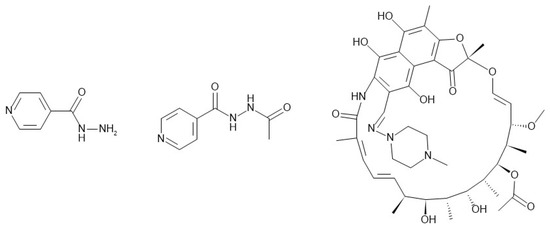 - Peloquin, C.A.; Namdar, R.; Dodge, A.A.; Nix, D.E. Pharmacokinetics of isoniazid under fasting conditions, with food, and with antacids. Int. J. Tuberc. Lung Dis. 1999, 3, 703–710. [Google Scholar]
