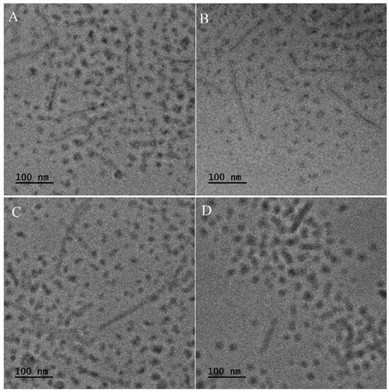 TEM images of micelles loaded with 3a (A), 3b (B), 3c (C) and 3d (D).