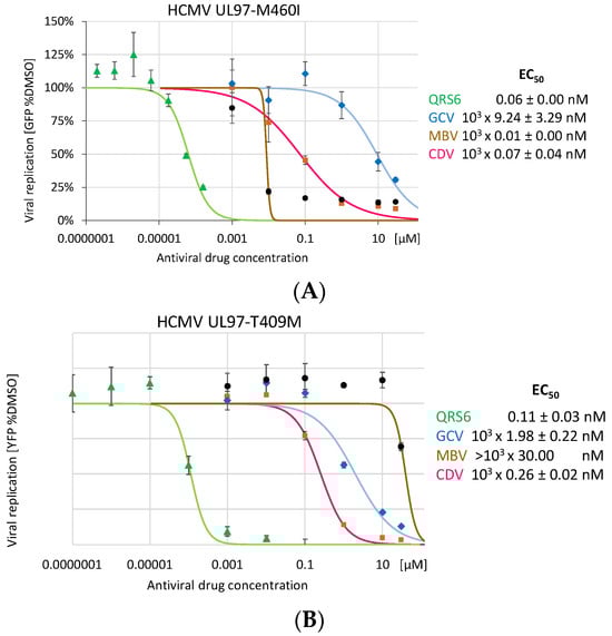 3.7. Lack of Viral Drug Cross-Resistance: Analysis of the Anti-HCMV Efficacy of QRS Compounds against Maribavir- or Ganciclovir-Resistant HCMV Mutants