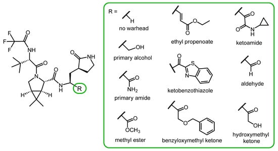 - Vankadara, S.; Dawson, M.D.; Fong, J.Y.; Oh, Q.Y.; Ang, Q.A.; Liu, B.; Chang, H.Y.; Koh, J.; Koh, X.; Tan, Q.W.; et al. A Warhead Substitution Study on the Coronavirus Main Protease Inhibitor Nirmatrelvir. Med. Chem. Lett. 2022, 13, 1345–1350. [Google Scholar] [CrossRef] [PubMed]