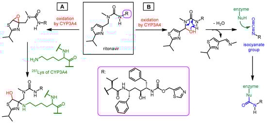 - Loos, N.H.C.; Beijnen, J.H.; Schinkel, A.H. The Mechanism-Based Inactivation of CYP3A4 by Ritonavir: What Mechanism? Int. J. Mol. Sci. 2022, 23, 9866–9890. [Google Scholar] [CrossRef]