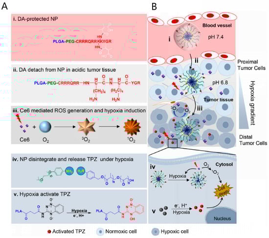 - Shu, M.; Tang, J.; Chen, L.; Zeng, Q.; Li, C.; Xiao, S.; Jiang, Z.; Liu, J. Tumor microenvironment triple-responsive nanoparticles enable enhanced tumor penetration and synergetic chemo-photodynamic therapy. Biomaterials 2021, 268, 120574. [Google Scholar] [CrossRef]