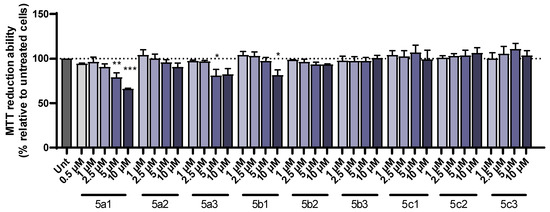 - Mosmann, T. Rapid colorimetric assay for cellular growth and survival: Application to proliferation and cytotoxicity assays. J. Immunol. Methods 1983, 65, 55–63. [Google Scholar] [CrossRef] [PubMed]