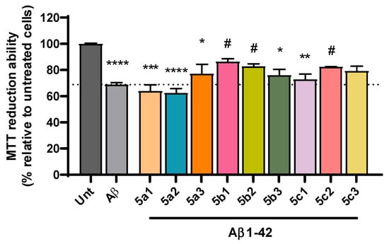 3.5. Inhibition of Aβ1-42 Self-Aggregation