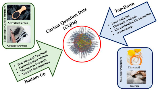 Summary of top–down and bottom–up CQDs’ synthesis methods.