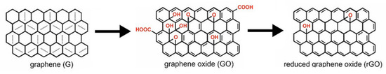 Researchers Since Novoselov and coworkers [333] received the Nobel Prize in Physics for the discovery of graphene in 2004, research on the potential applications of this faltering material has increased exponentially, ranging from electronic, optoelectronics, biomedical engineering, tissue engineering medical implants, and sensors. Beyond the aforementioned applications, the use of graphene for biomedical applications is a relatively new area with significant potential. The first biomedical study on graphene was reported by Sun et al. in 2008 [334] as an efficient nanocarrier for drug delivery. Since then, a lot of interesting works have been carried out to explore the use of graphene in medicine. The intensive research on the bio applications of graphene and its derivatives is due to many fascinating properties of this material, such as high specific surface area (2630 m2/g), exceptional electronic conductivity (mobility of charge carriers, 200,000 cm2V1s1), thermal conductivity (~5000 W/m/K), mechanical strength (Young’s modulus, ~1100 Gpa), intrinsic biocompatibility, low cost and scalable production. The chemical structures of graphene, graphene oxide (GO), and redudef form of GO show in Figure 7.