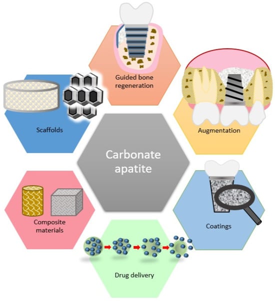 From biological and mineralogical points of view, bone apatite demonstrates both structural stability and biodegradability. Carbonate apatites could be utilized for various biomedical applications, such as bone substitution, imaging markers, scaffolding, drug delivery, and tissue engineering of biomimetic materials with improved regenerative properties [].