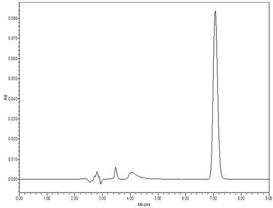 A reverse phase HPLC method was developed to quantify lurasidone. The samples were analyzed using a 250 mm × 4.6 mm Inertsil C18 ODS-3V column with a mobile phase combination of 10 mM sodium citrate buffer (pH 5.3) as the buffer phase and a mixture of acetonitrile and methanol in a 5:95 ratio as the organic phase. The injection volume was 10 µL, the flow rate was 1 mL/min, and the column temperature was maintained at 40 °C. The drug peak was observed at 6.8 min, and the total run time for the analysis was 10 min. The detection wavelength was 230 nm. The developed method was validated for accuracy, precision, linearity, limit of detection (LOD), and limit of quantification (LOQ) assessments.