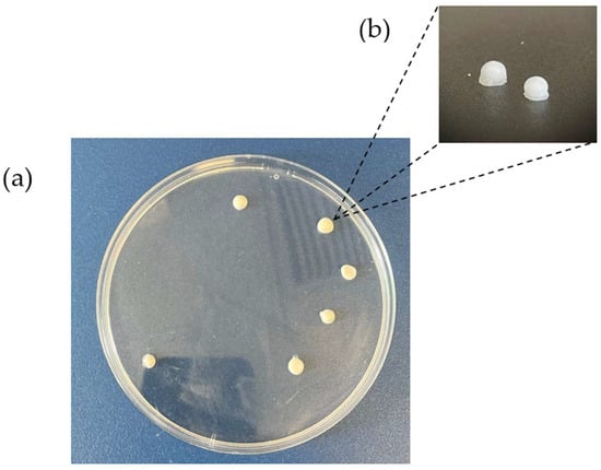 The 3D-printed HCT mini-tablets using the BIOX printer: (a) top view of the tablets, (b) side view of the tablets.