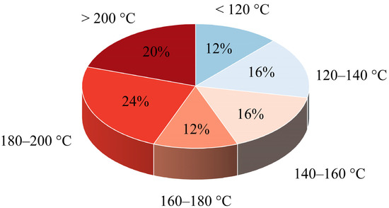 A well-established melt-based manufacturing process for ASDs is hot melt extrusion (HME) [16,17,18]. In this process, drug-excipient mixtures, often with polymers as a carrier matrix, are heated and mechanically mixed using one or more screws with special shear elements. The mixture becomes a viscous melt that is forced through a die. After cooling, the API remains dispersed in the polymer matrix, often in an amorphous state. This technique is already widely used in the pharmaceutical industry and several products are already on the market [19]. The APIs whose solubility could be improved by HME have different temperature-dependent process windows; these process windows must fit into the requirement profile of the polymer. The melting temperature (Tm) provides a preview of the temperature at which the APIs can be processed by HME. In Figure 1, the distribution of the melting points of the 24 APIs listed by Alzahrani et al. [19], which are processed via HME, is shown. Considering this broad distribution, it highlights how different temperature requirements must be met by suitable polymers in order to cover the variety of APIs.